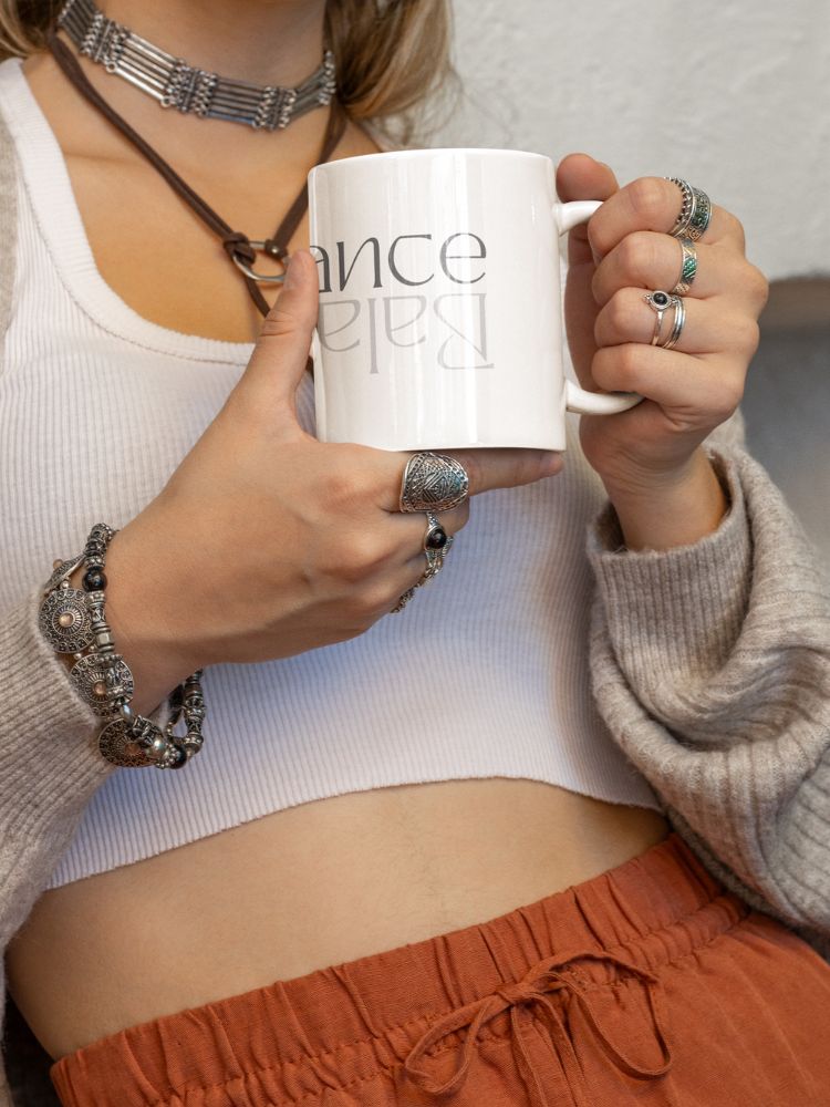 De Comfi Yogi mok “Balance” is ontworpen voor iedereen die rust, harmonie en mindfulness wil integreren in de yoga lifestyle. Het minimalistische design symboliseert innerlijke balans en focus. Deze keramische mok is perfect voor koffie, thee, matcha of warme chocolademelk en ondersteunt je yoga, meditatie en mindful drinking. Ideaal voor yogi’s, spirituele mensen en iedereen die bewust leeft en zijn energie in balans wil houden.