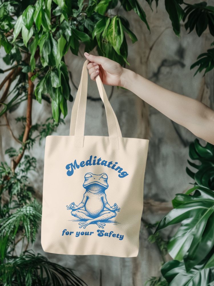 De “Meditating for your safety” yoga tote bag is ontworpen voor iedereen die spiritualiteit en stijl wil combineren. Het minimalistische design staat symbool voor zuiverheid, balans en persoonlijke groei. Met deze tas draag je niet alleen je spullen, maar ook een stukje yoga lifestyle met je mee. De tas is ruim, licht en duurzaam, ideaal voor yoga, boodschappen of dagelijks gebruik.