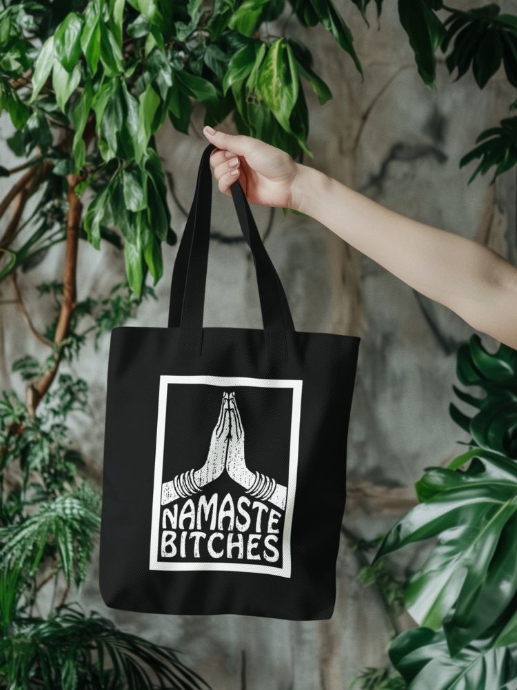De “Namaste bitches” yoga tote bag is ontworpen voor iedereen die spiritualiteit en stijl wil combineren. Het minimalistische design staat symbool voor zuiverheid, balans en persoonlijke groei. Met deze tas draag je niet alleen je spullen, maar ook een stukje yoga lifestyle met je mee. De tas is ruim, licht en duurzaam, ideaal voor yoga, boodschappen of dagelijks gebruik.