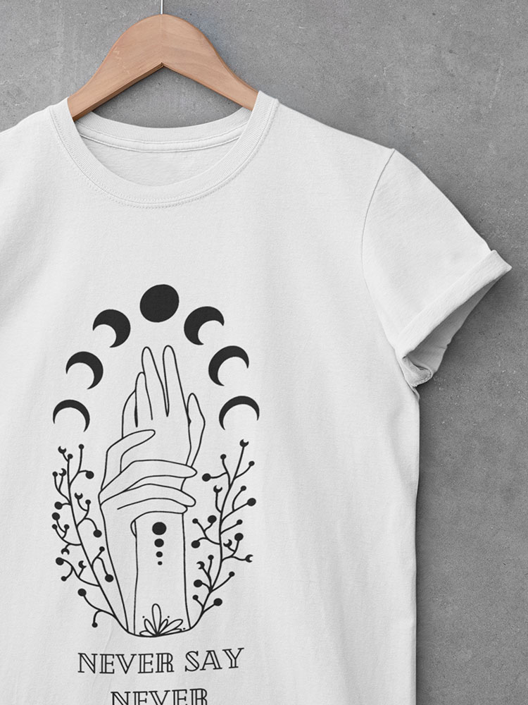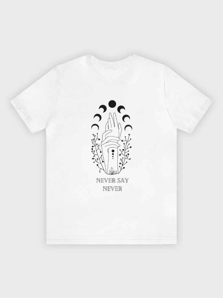 Het Never say never spiritual shirt van Comfi Yogi is een inspirerend ontwerp dat je eraan herinnert om vertrouwen te hebben in de kracht van het universum. Dit stijlvolle shirt is een perfecte keuze voor iedereen die houdt van spirituele kleding en een bewuste, mindful lifestyle.