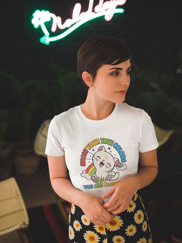 Het Show your true colors shirt van Comfi Yogi is een uniek positiviteit shirt dat jou elke dag herinnert aan de kracht van optimisme. Dit stuk vrolijke kleding is niet alleen stijlvol en comfortabel, maar ook een echte boost voor je humeur. Als happy shirt brengt het luchtigheid en energie in je dagelijkse routine, terwijl de inspirerende positieve spreuk op de voorkant je telkens opnieuw motiveert.