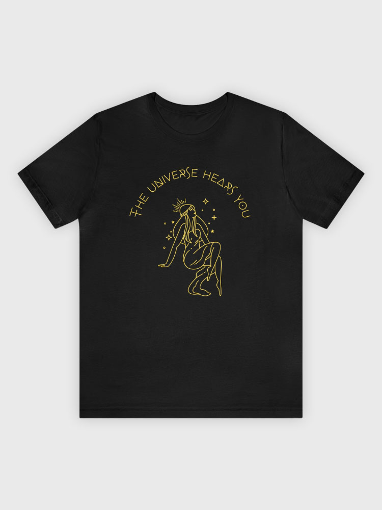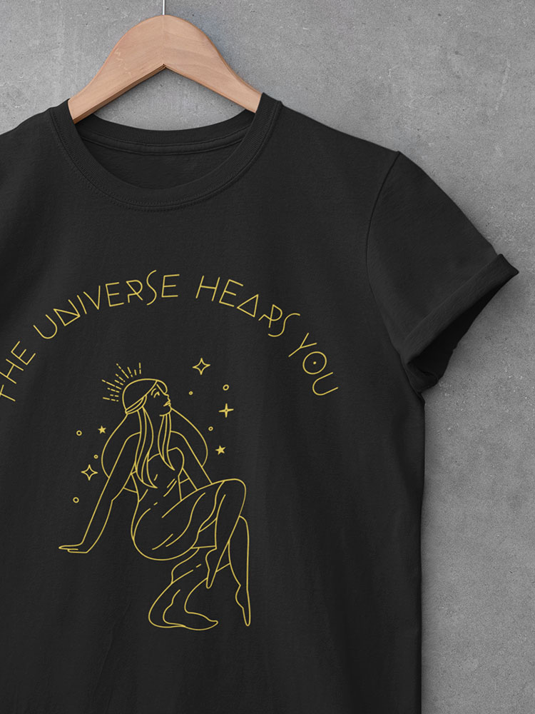Het The universe hears you spiritual shirt van Comfi Yogi is een inspirerend ontwerp dat je eraan herinnert om vertrouwen te hebben in de kracht van het universum. Dit stijlvolle shirt is een perfecte keuze voor iedereen die houdt van spirituele kleding en een bewuste, mindful lifestyle.